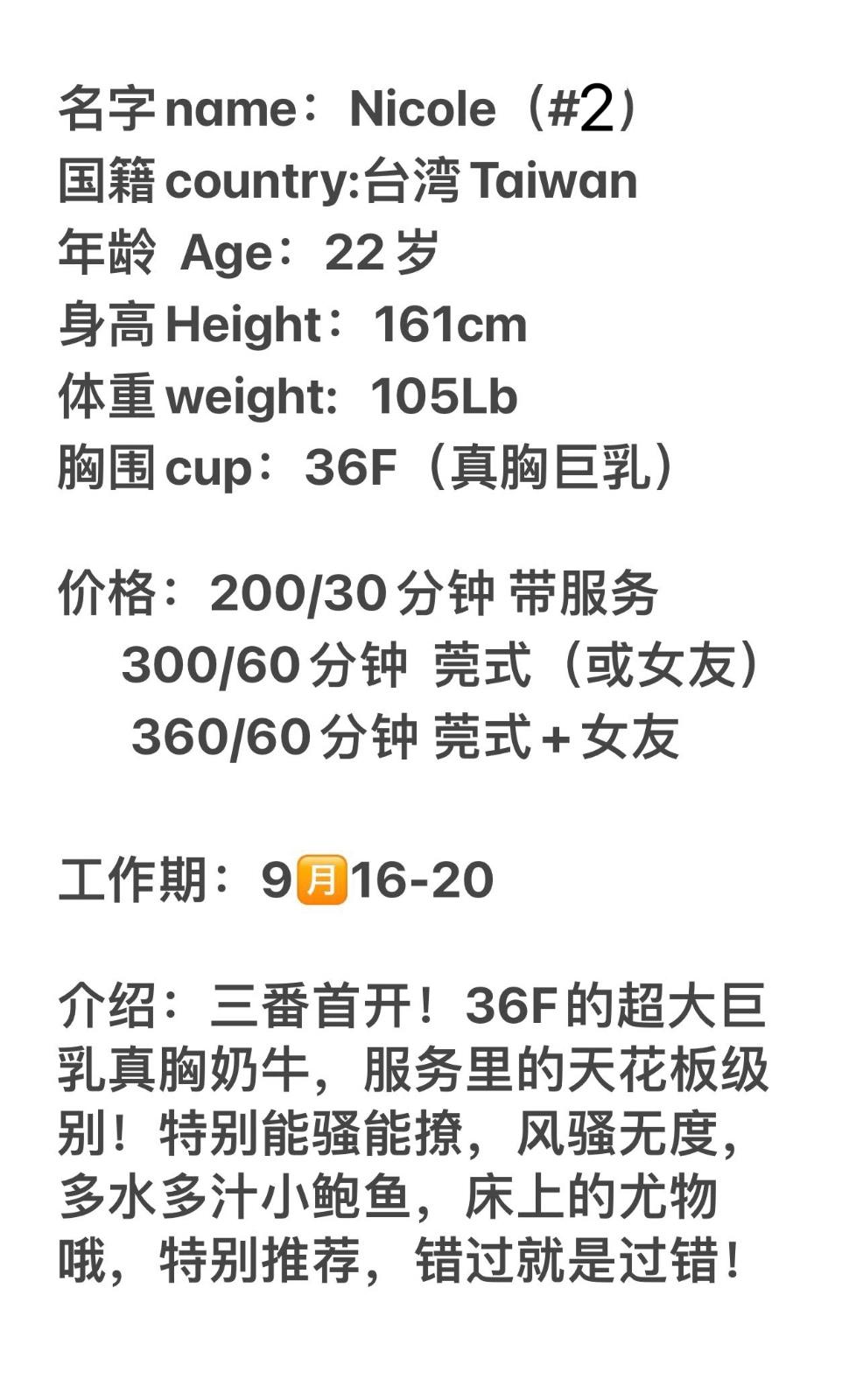 Number 2 girl,Nicole,horny Taiwanese with big 36F,unforgettable girl,22 yrs old,5’3,105 lbs. Gfe and DG services.