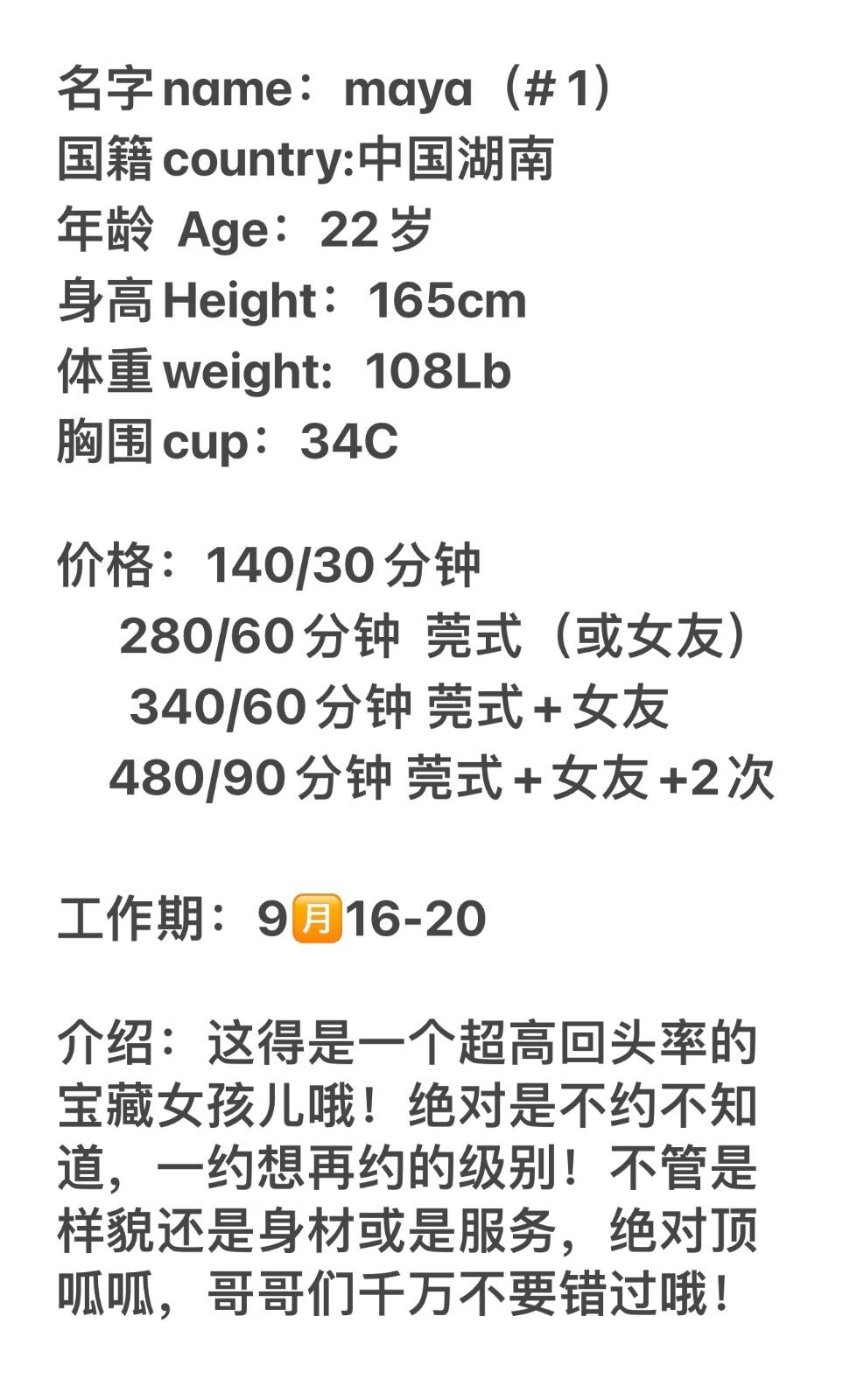Posted: Sep 19 15:55:19 2022Number 1 girl,Maya,22 yrs old Chinese,34C,5'3,108 lb,treasure popular girl. Gfe and DG services.